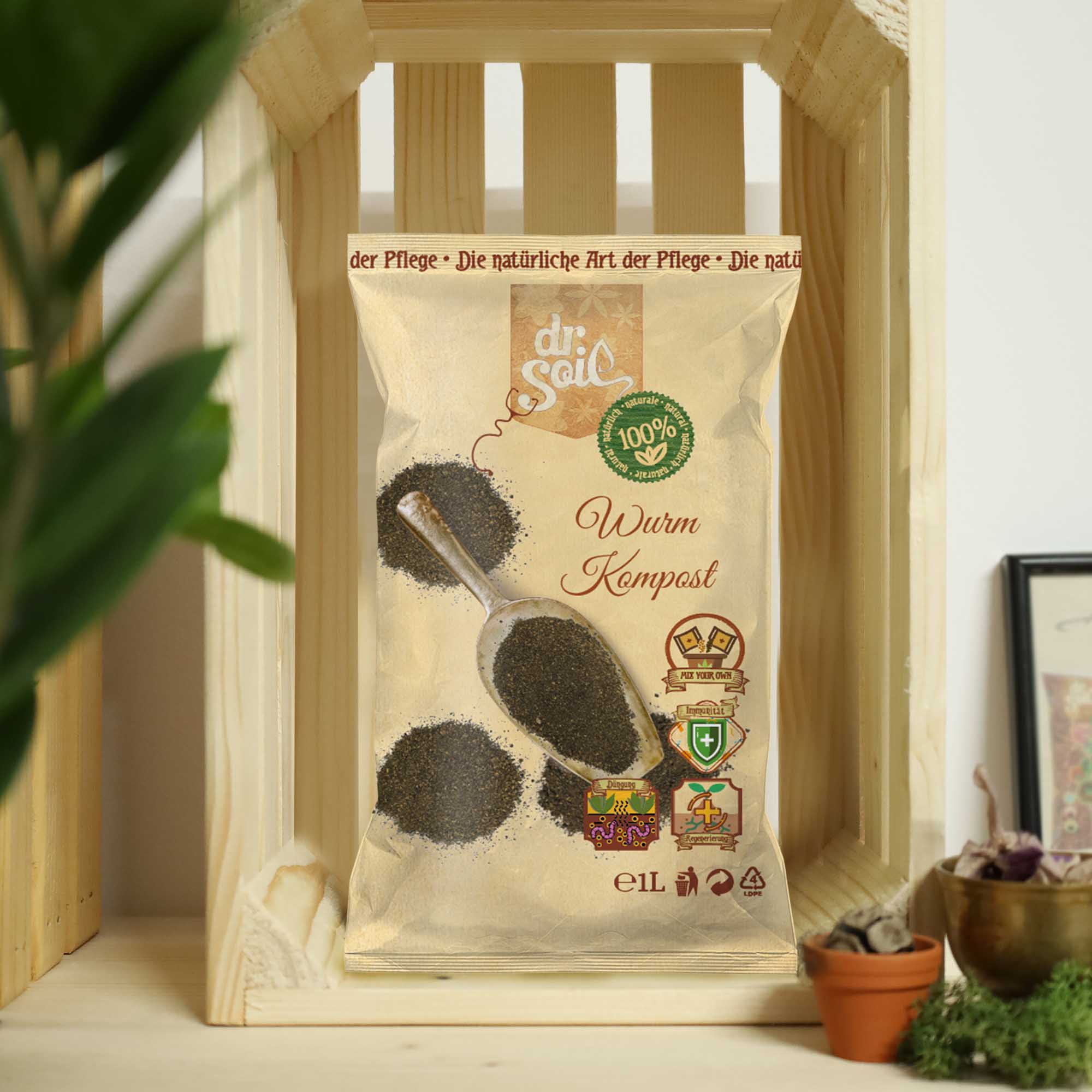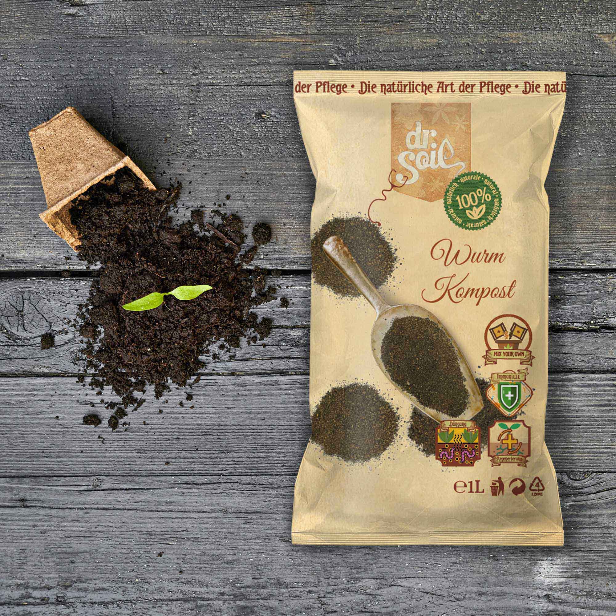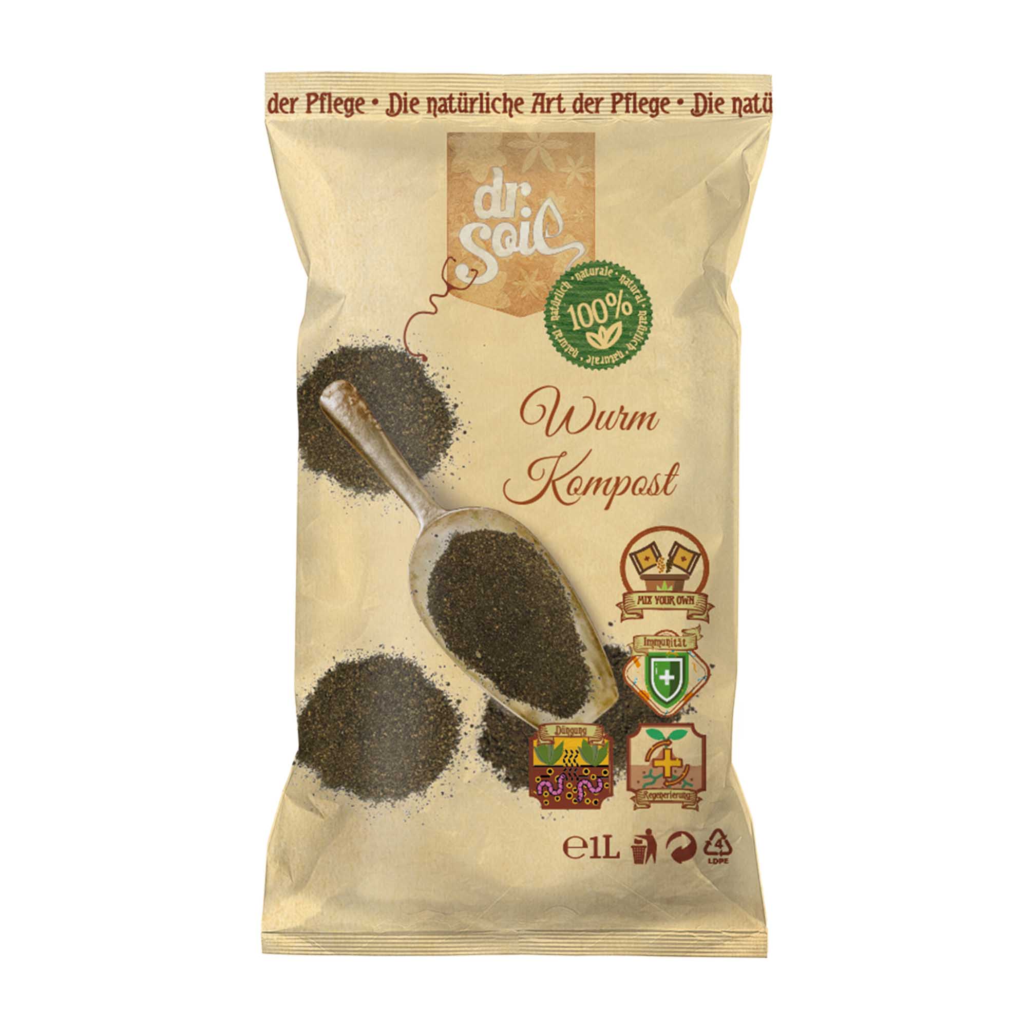 Revitalizați-vă grădina cu compostul de viermi Dr.Soil 1 l – stimulentul natural din colecția noastră „Amestecă-ți propriul substrat”!